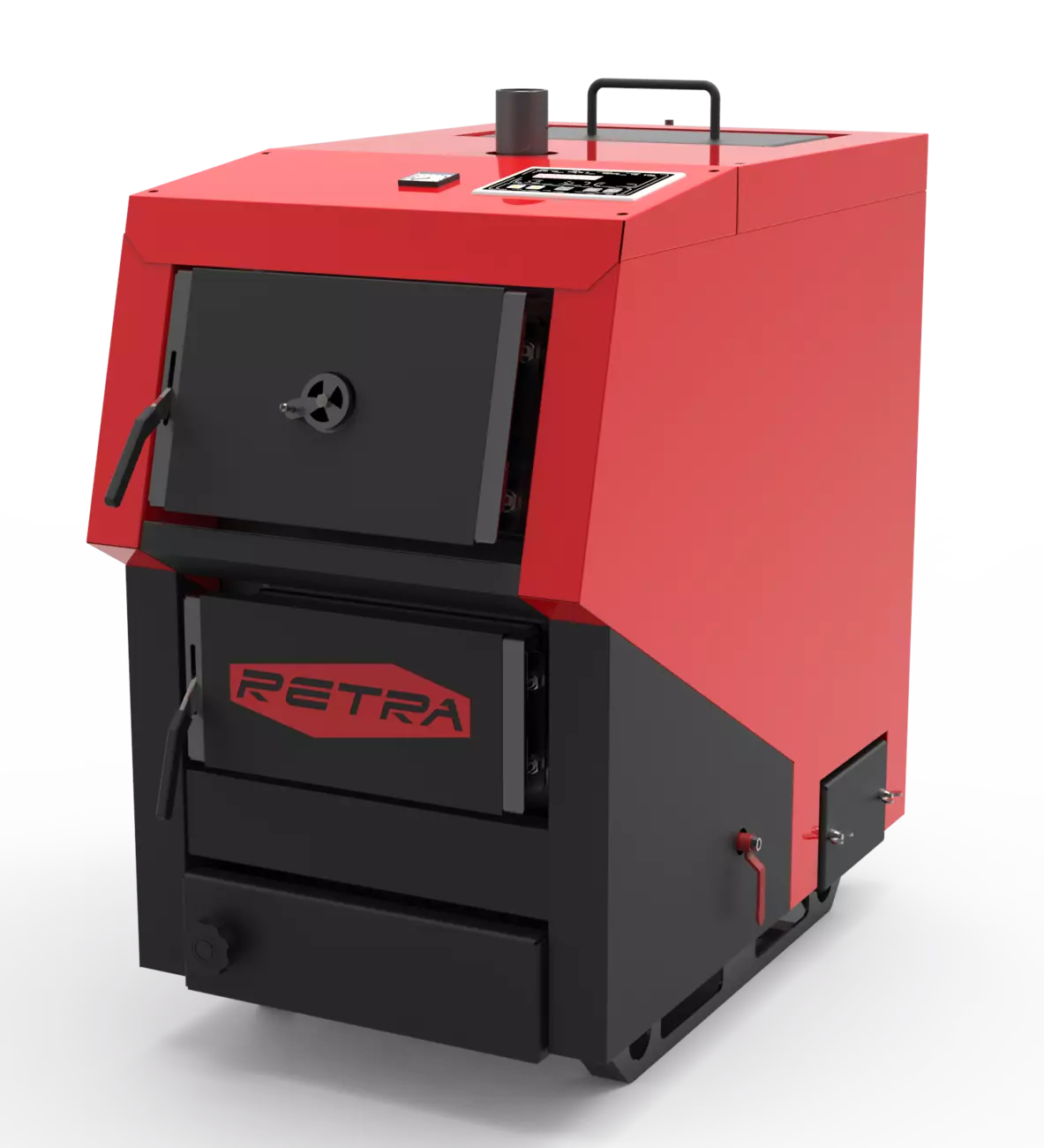 Котлы отопительные водогрейные твердотопливные стальные бытовые «Ретра Light» мощностью от 25 до 98 кВт и промышленные мощностью 150-600 кВт предназначены для теплоснабжения индивидуальных жилых домов и сооружений коммунально-бытового назначения. Обеспечены микропроцессорным регулированием температуры теплоносителя и принудительной регулируемой подачей воздуха в камеру сгорания. Система рассечение воздушного потока по всему объему топки обеспечивает полное сгорание топлива.